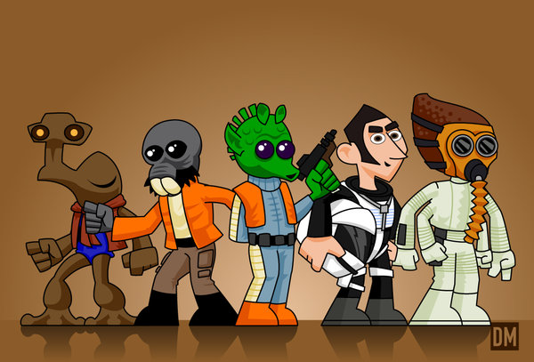 Découvrez les illustrations effets cartoons réalisées par l’artiste Daniel Mead où l’on retrouve l’univers de Star Wars avec le côté obscur de la Force et les Jedis.